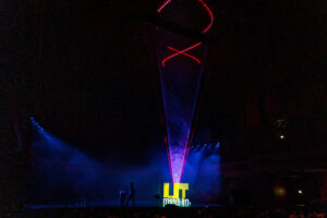 Við smíðuðum merki UT í 180cm hæð og vörpuðum opnunaratriði í takt við taktfasta tónlist. Síðar var sviðsmyndinni komið fyrir í Rímu fyrir gesti og gangandi að skoða nánar.